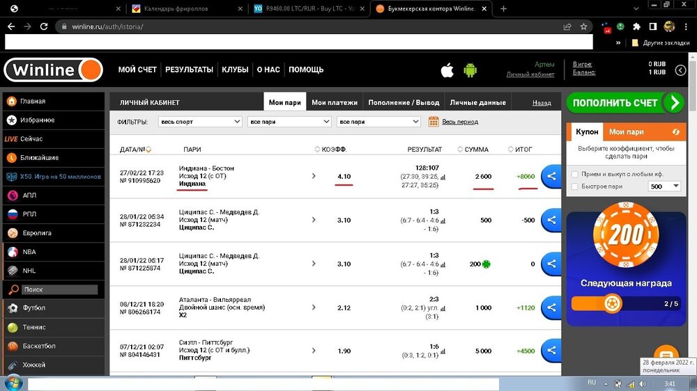 Ух-ты с лета ничё не писал - ну особо выигрышй-то не было... Под НГ участвовал в куче розыгрышей , регался от стримеров и ждал новогоднего чуда и ни в одном, бля, розыгрыше нифига не выиграл В очередной вечер сижу за компом катаю в соцказиках (наплодилось их до жопы) и тут в тг какой-то бот предлагает дроп получить - ну я нажал получить - дали 19К каких-то монет - ну подумал это пару баксов от силы , потому что для дропа я никаких заданий не выполнял (как надо для хороших плюшек). Оказалось это бот от казино Йоубит) И регался я в нём чтобы вывести сраные 300р с одного сайта летом и забыл про это малоизвестную биржу. Ну пошёл я на биржу посмотреть скока в баксах дроп будет - прихожу - а там шухер, анархия и беспредел раздали многим этих монет и все ринулись на биржу быстрей обналичить - по курсу 19К монет выходило 150,мать его, БАКСОФФФФ- афигееетььььь, вот это подгонищееее - хотел быстрей вывести - пока не укатали в ноль - но код для входа на почту не приходил (как у многих тогда). Зашёл на след день - а там курс вырос и уже за 200$ продавались 19К - просто сказка какая-то и тут я решил понаблюдать - далее он вырос до 250, потом даже до 300$ - это было в новогоднюю ночь и пошёл я в баню... Прихожу монета просела резко на 25% - понаблюдал за рынкоми продал быстрей за 250$ - татааатааатаааммм!!!!! - биржа быстро вывела все бабки - респект ей! Вот такая новогодняя сказка Обновил одежку, купил многа еды , салааатовв и кассету на бритву новую взял - дорогие они, сука, очень. Прошлые 6 месяцев одной кассетоу шкрябал своё лицо. А 200 $ слил в сраный покерок, пытаясь выполнить эти сраные задания и в слоты - будь он неладен))) Но это другая история...1 балл