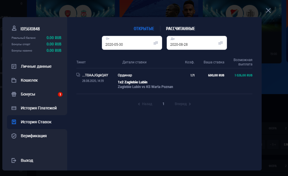 Промокод BETSTART1 ввести в личном кабинете на сайте