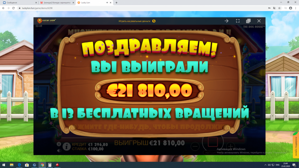 конкурс Конкурс скриншотов в казино Lucky Lion к 23 февраля