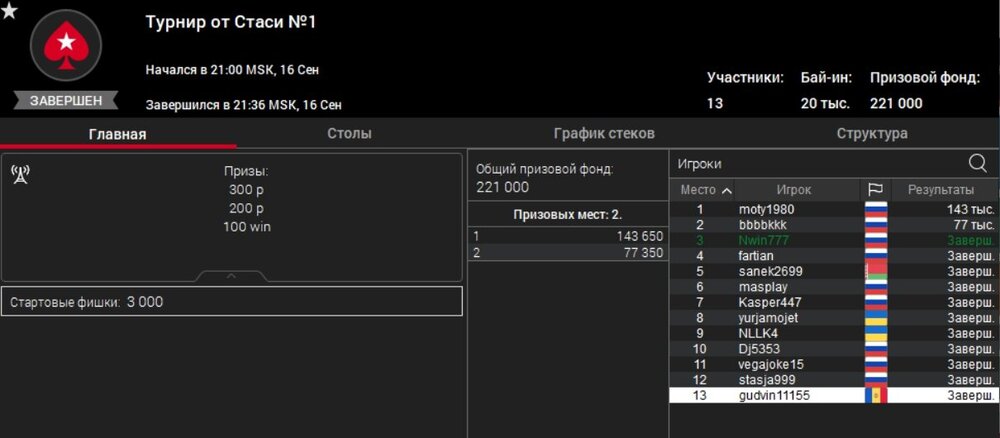 покерный клуб Турниры от Стаси