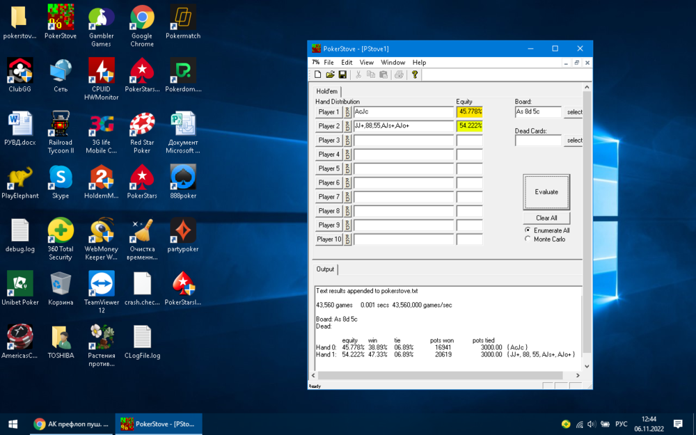 Bart Опубликовано 21 июля, 2022 Опубликовано 21 июля, 2022 префлоп пуш с АК это вполне нормальное действие. нередко приходится с куда более худшими руками идти олин. но на ранней стадии турнира, на олин, трибетолин в стеках 60 бб+ я очень часто их выброшу в пас, в зависимости от оппонента конечно. на бабле тоже постараюсь с АК не идти префлоп олин. 3 Цитата