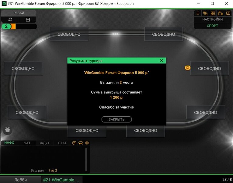 Владимир Хныкин Опубликовано 22 апреля, 2022 Опубликовано 22 апреля, 2022 Всем покеристам привет) хотелось бы ещё раз поблагодарить организаторов данного фриролла за возможность в нём участвовать) Что хотелось бы сказать. Всё больше и больше людей принимает участие в данном турнире. В этот раз приняло участие 350 человек. Помню не так давно в нем регистрировалась человек 150. Ну и как правило с появлением большего количества людей появляются и многие кто не доволен. Кто то недоволен количеством призовых мест, кто то что не может выиграть. Говорят мол "это боты выигрывают" мол деньги чтобы не отдавать. Я выкладываю скриншот. Сегодня я выиграл этот фриролл. И как видите я не бот))) Хотелось бы всех попросить. Кто будет занимать призовые места делитесь своими скринами здесь. Это и интересно и другие участники будут более замативированы)) ну и вопросов про ботов отпадут сами собой)) заранее огромное спасибо))) 2 5 Цитата