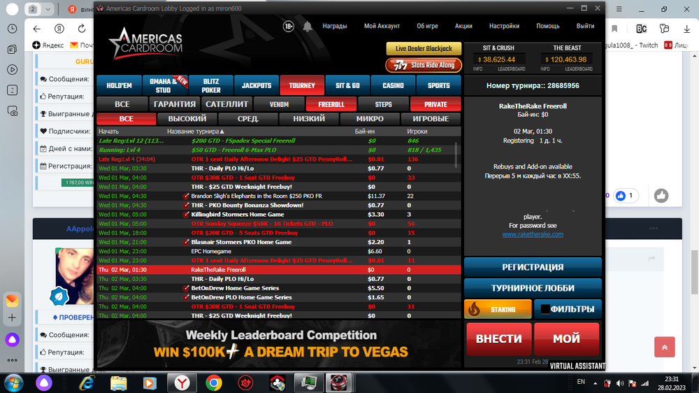 vasabi Опубликовано 9 мая, 2023 Автор Опубликовано 9 мая, 2023 Только что, werq116 сказал: что то не нашел турнира только стоят за 2.20 2 турнира хикару это и есть эти турниры... рега в них за 10 минут до начала бесплатная Цитата