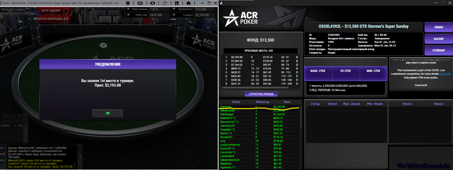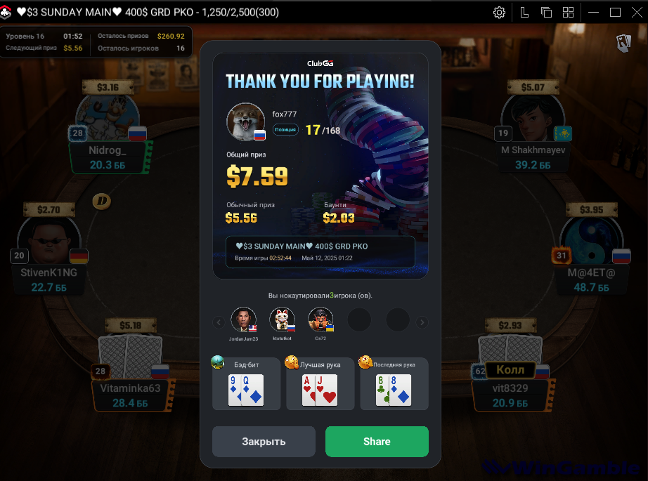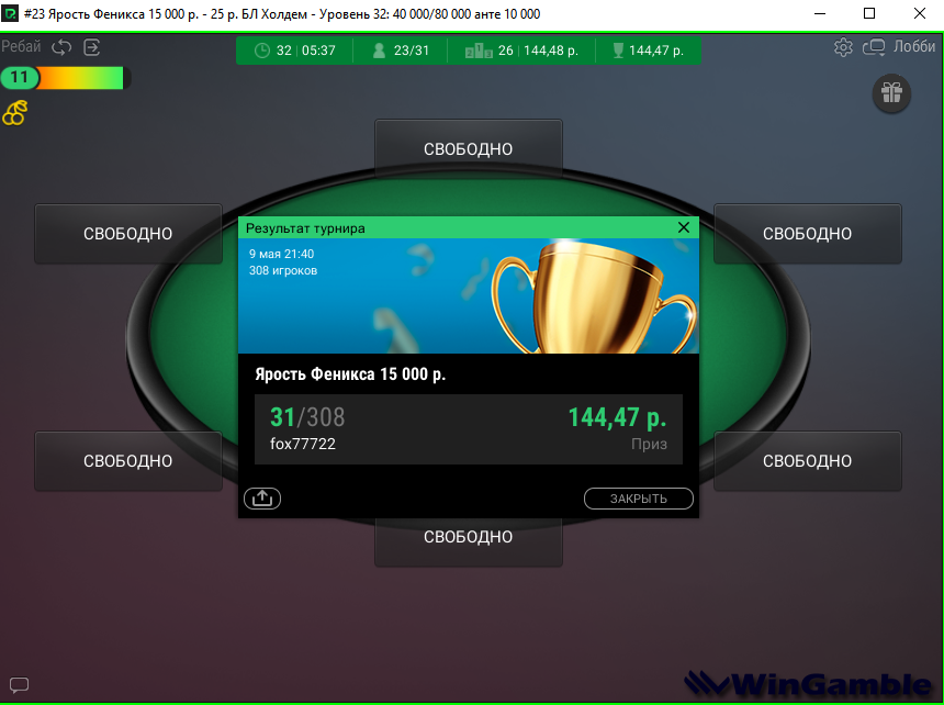 Затащил турнир за 6.60$ (6часов продолжался)