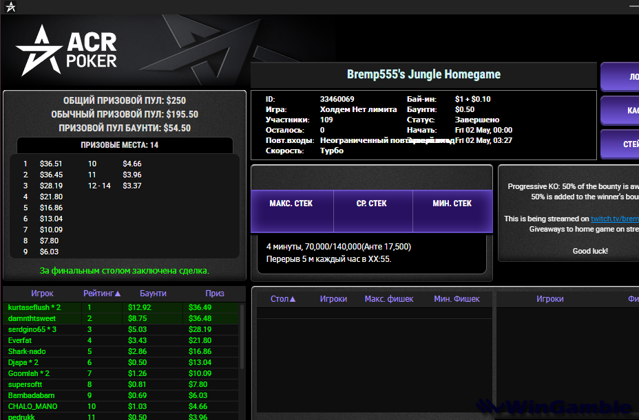 serdgino Опубликовано 3 ноября, 2024 Автор Опубликовано 3 ноября, 2024 всем привет! давненько в этой теме ACR не отписывался , правда и похвастаться было не чем , вчера сыграл в одном частном турике , почти в первой раздаче повезло выбить стримера , 25$ за ее голову заработал, но в турнире не сложилось. но задачу минимум выполнил. 2 1 Цитата