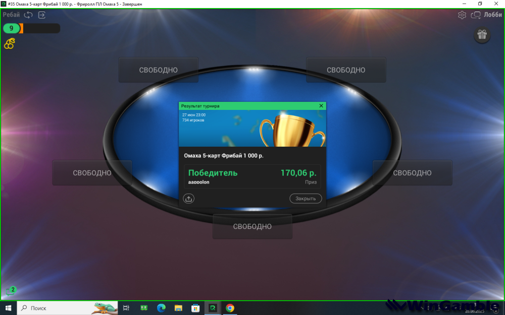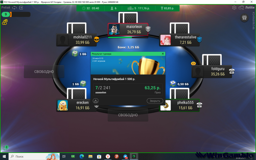 Офигеть, это ты около 6 часов катал. Не люблю такие долгие турниры. Хотя за такие призовые можно и потерпеть.