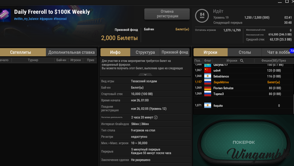100 раздач играй в кеш столах и каждый день дают билет,лучше с билетом заходить в позднюю регу, турнир на 100.000 можно повторно заходить ,если есть доп билеты,то есть ребаи делать в поздней реге.