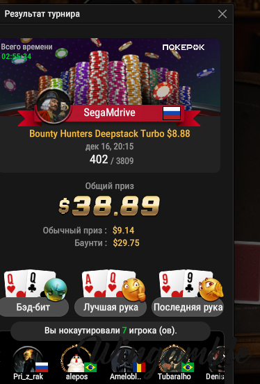 @Bashkir80 да я в курсе Вадим про ре-ентри в турик за 100к , сегодня получилось реализовать ещё один билет на 100к , зашел в позднюю и удвоился , этого хватило ,чтобы попасть в призы, в кэшик не играю, только МТТ.