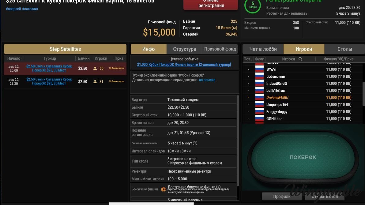 тоже зарегся  на турик " Кубок Покерок " за 25 $ и на два саттика за 2.5 бакса .