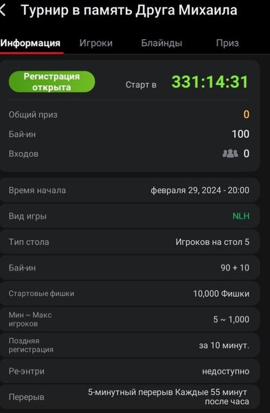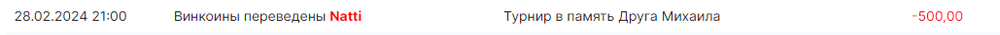 @Альвар ну что ты жмёшься, хотел сделать турнир, а что с краюшку стоишь?, почему призовые не подбилл? где твоя суета? в память о друге, как обычно я великое  ХОЧУ, а достаётся Наташе на разруливание, по этому и говорил тебе не наёбывай сам себя.
