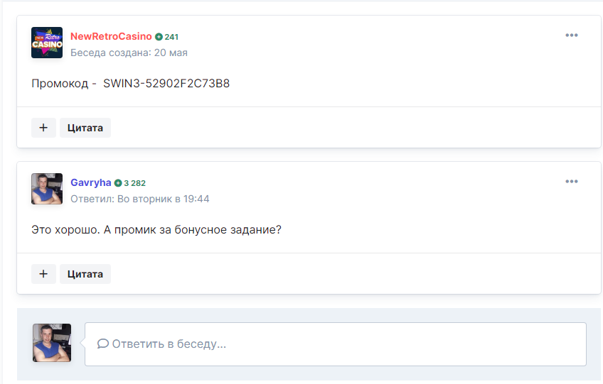 Gavryha Опубликовано 13 мая, 2024 Опубликовано 13 мая, 2024 (изменено) Пример 1 день -занос 10 руб(+10руб.за второй день) 2 день -занос 30руб(+30 руб.за третий день) 3 день - занос 50 руб (+50 руб за 4день) 4 день -занос 3 рубля И т.д. В итоге 20+60+100+3 итоговая сумма Каждый день будут удваивать твой занос за предыдущие сутки *Для увеличения шансов на победу рекомендуется играть каждый день. думаю так Изменено 13 мая, 2024 пользователем Gavryha 2 Цитата