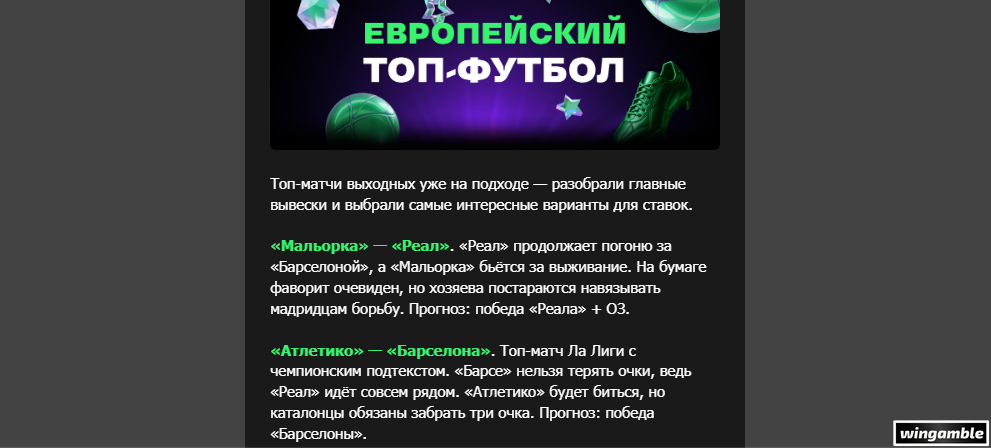 Никакой шелухи — только самое актуальное и полезное, чтобы вы могли выбрать лучшие исходы для своих ставок. Кто владеет информацией, тот составляет классные «экспрессы»!